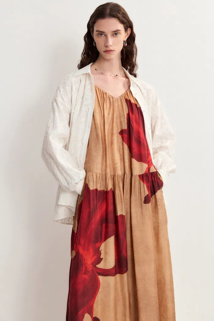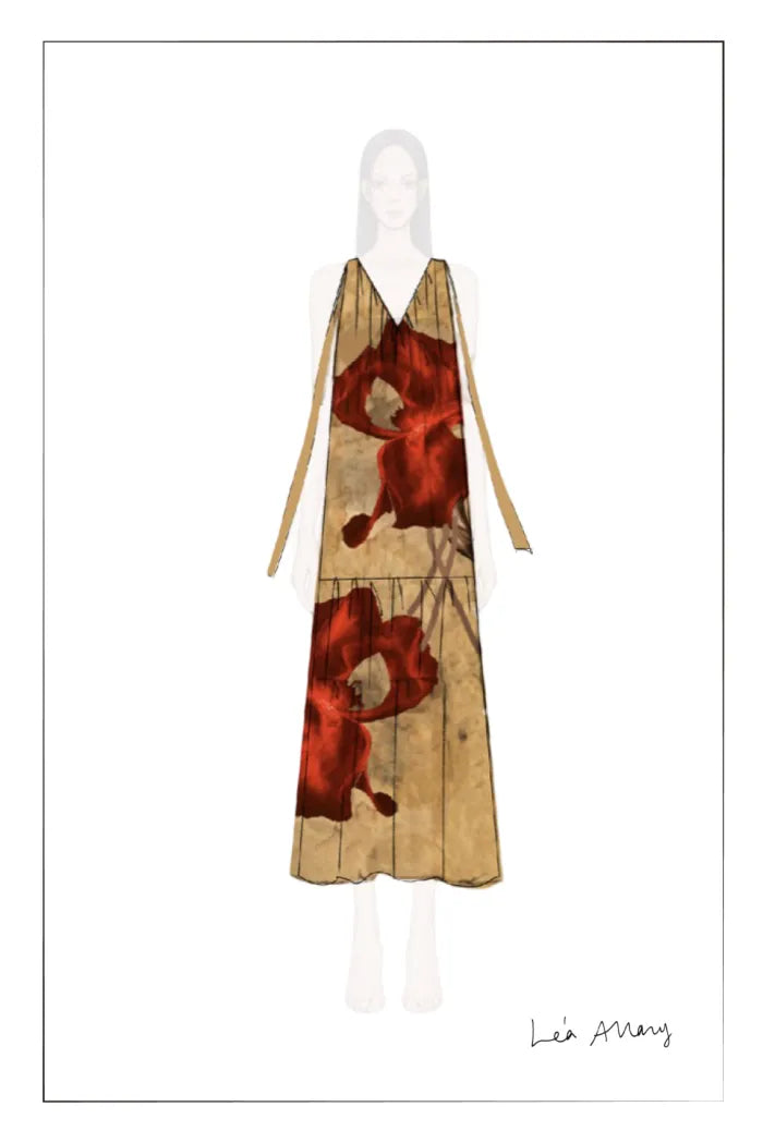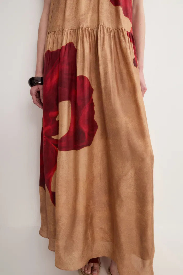 Abby Crimson Iris Flora Sleeveless Dress in Lyocell