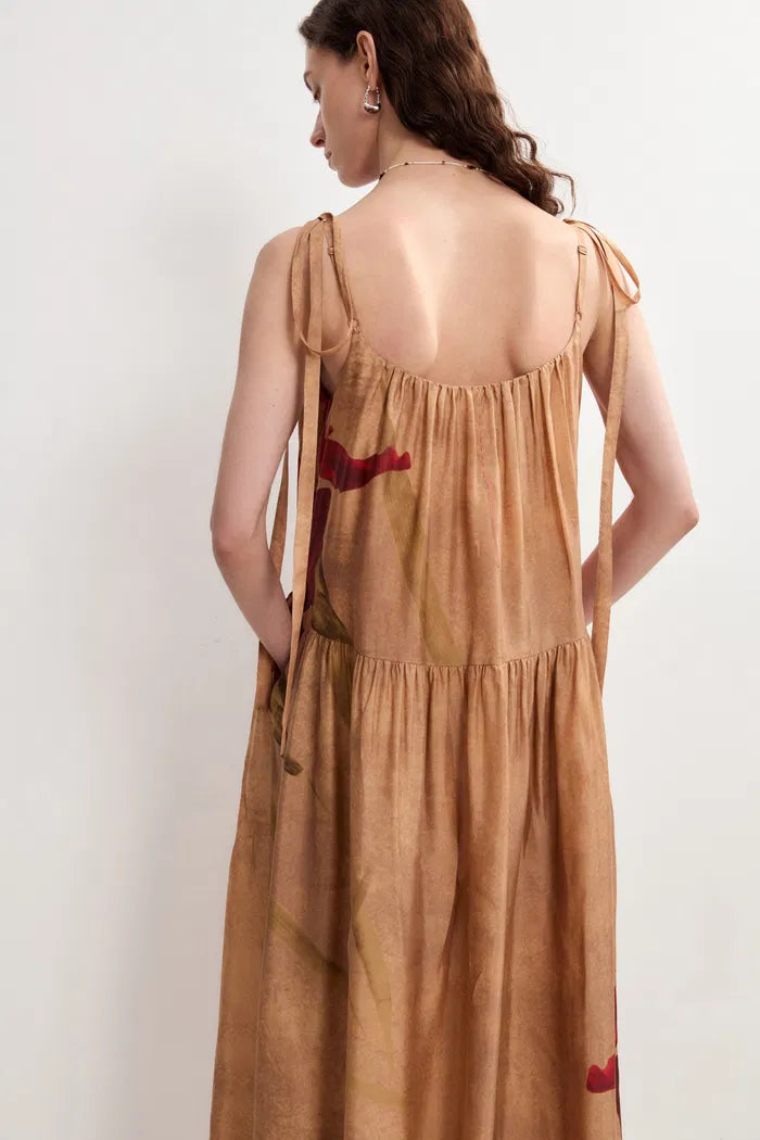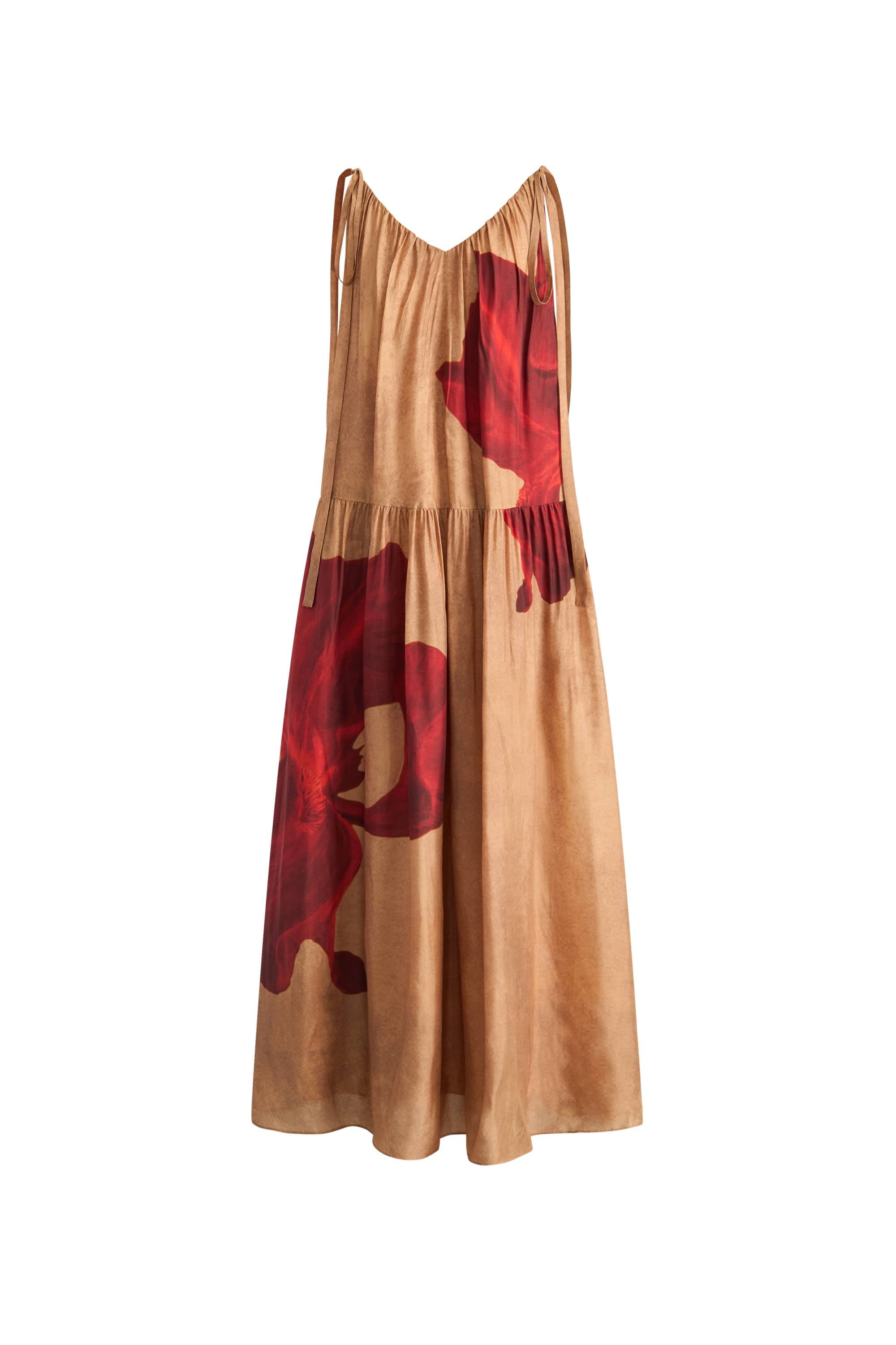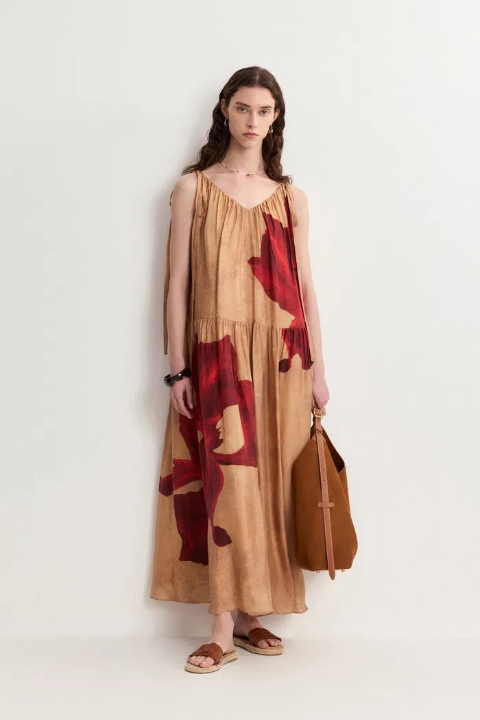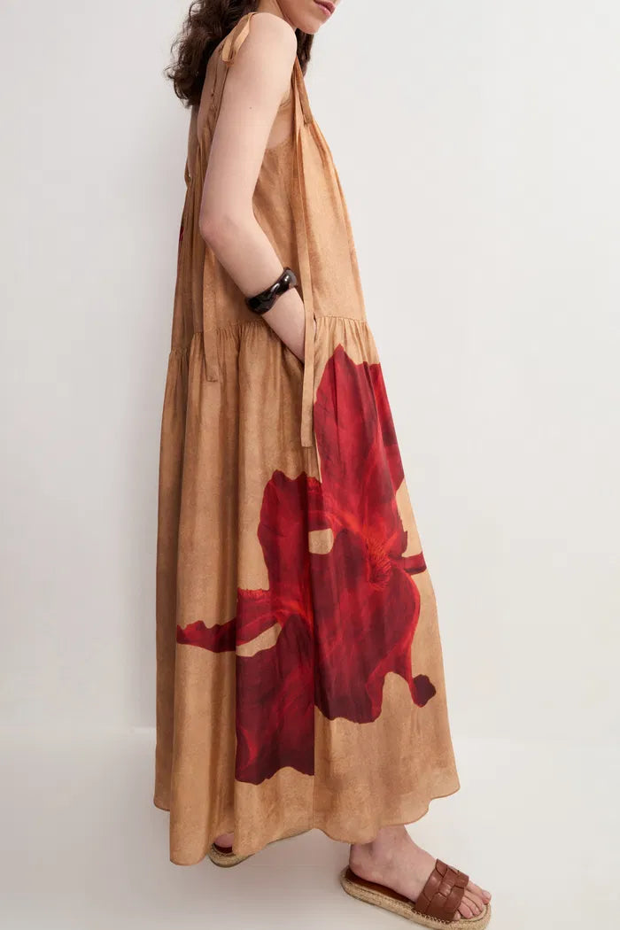 Abby Crimson Iris Flora Sleeveless Dress in Lyocell