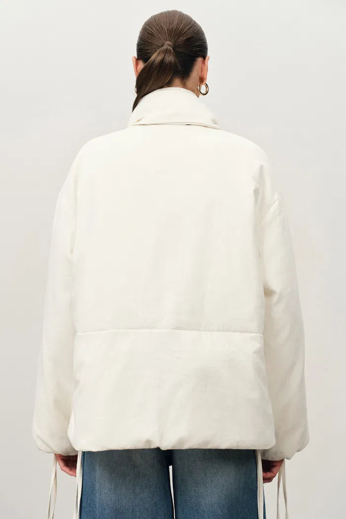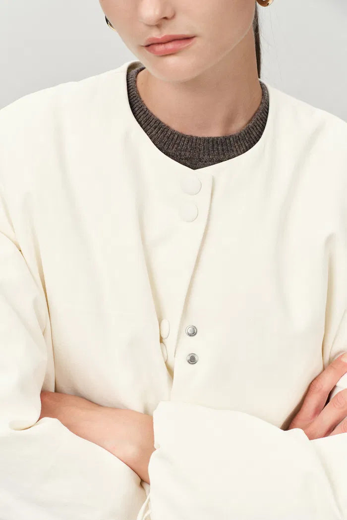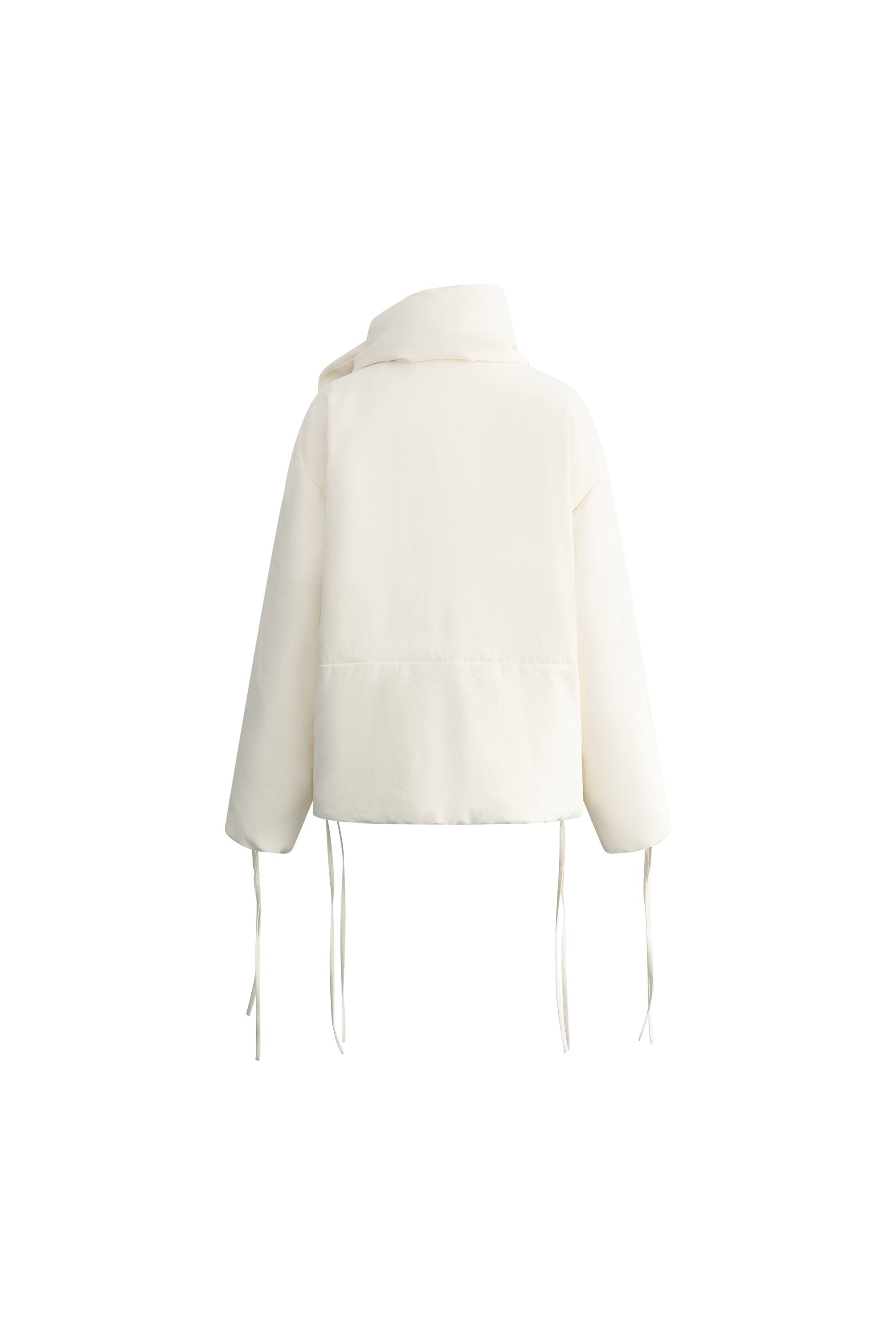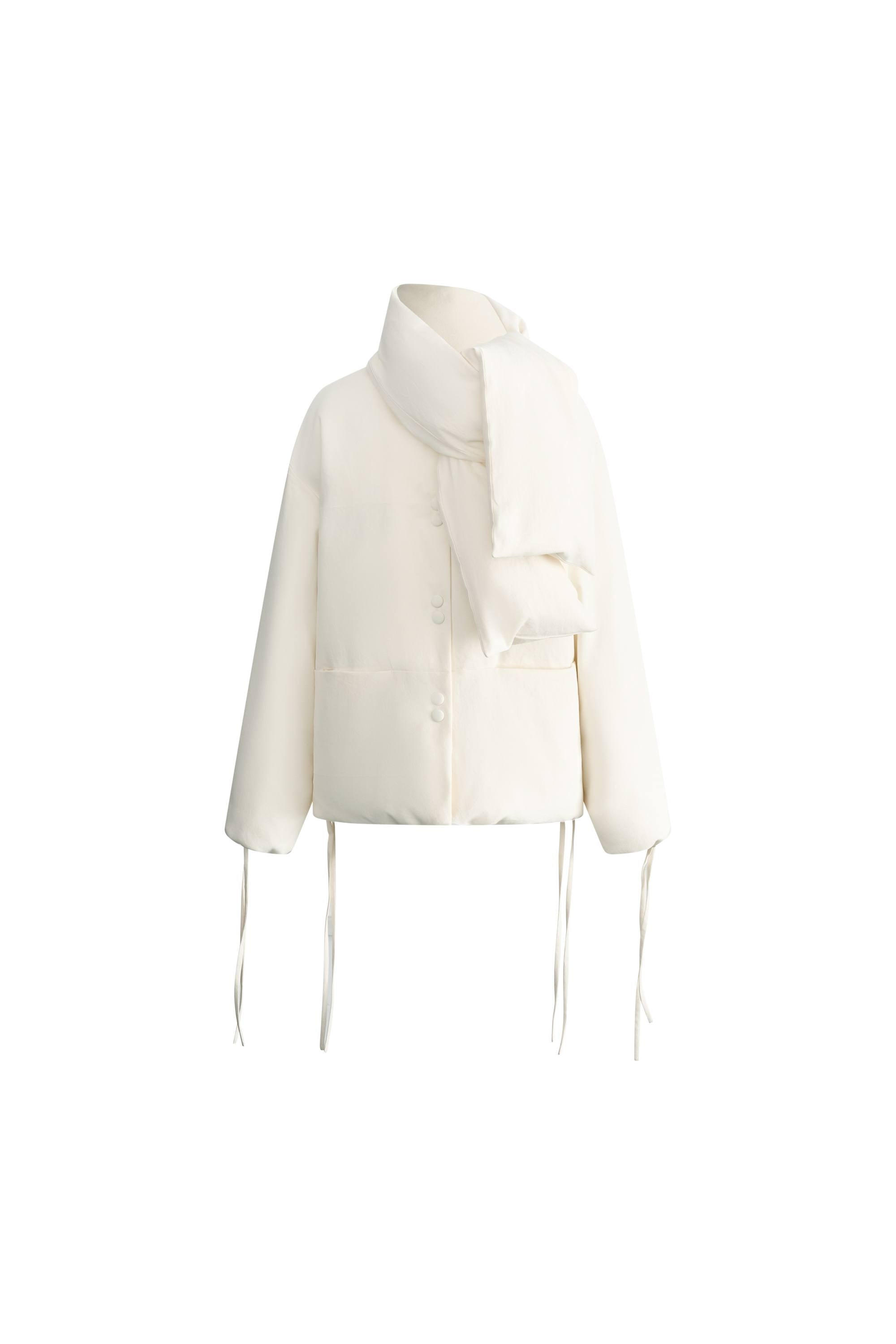 Aimee Detachable Scarf Down Jacket in Hollow Yarn Fine Twill