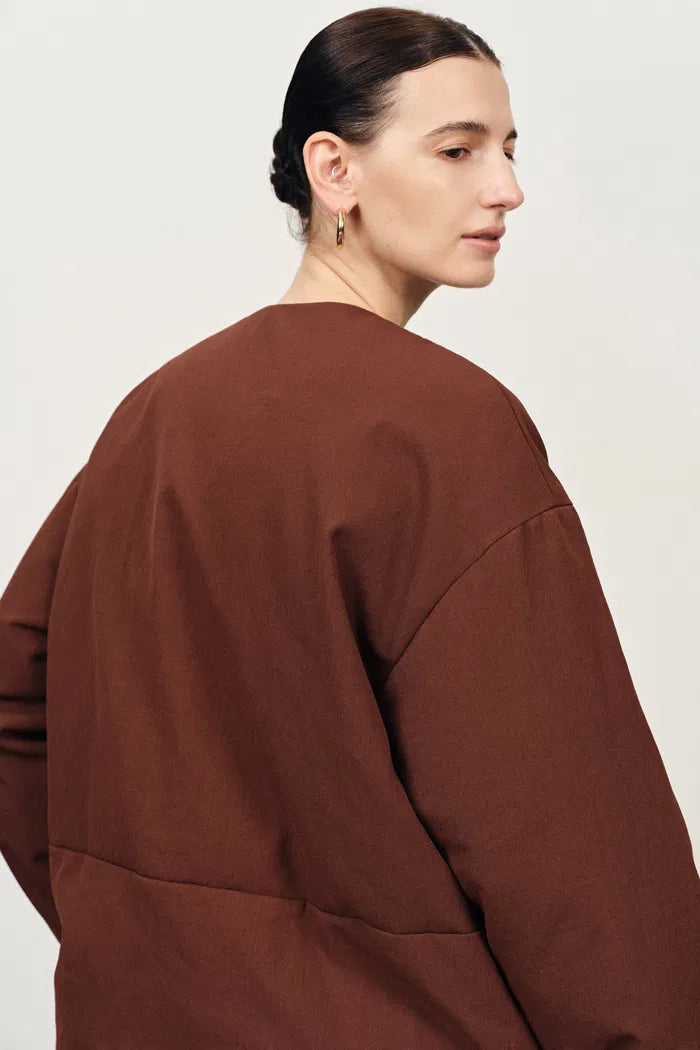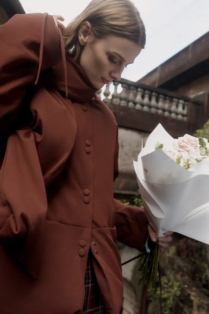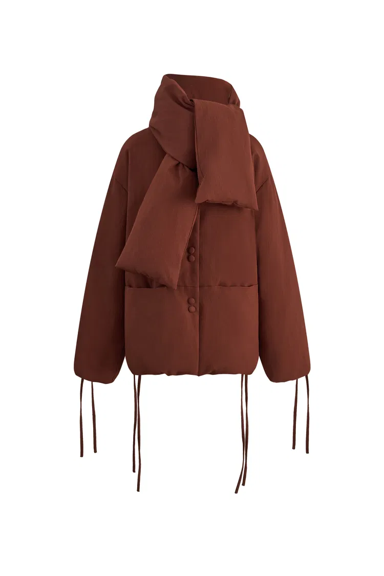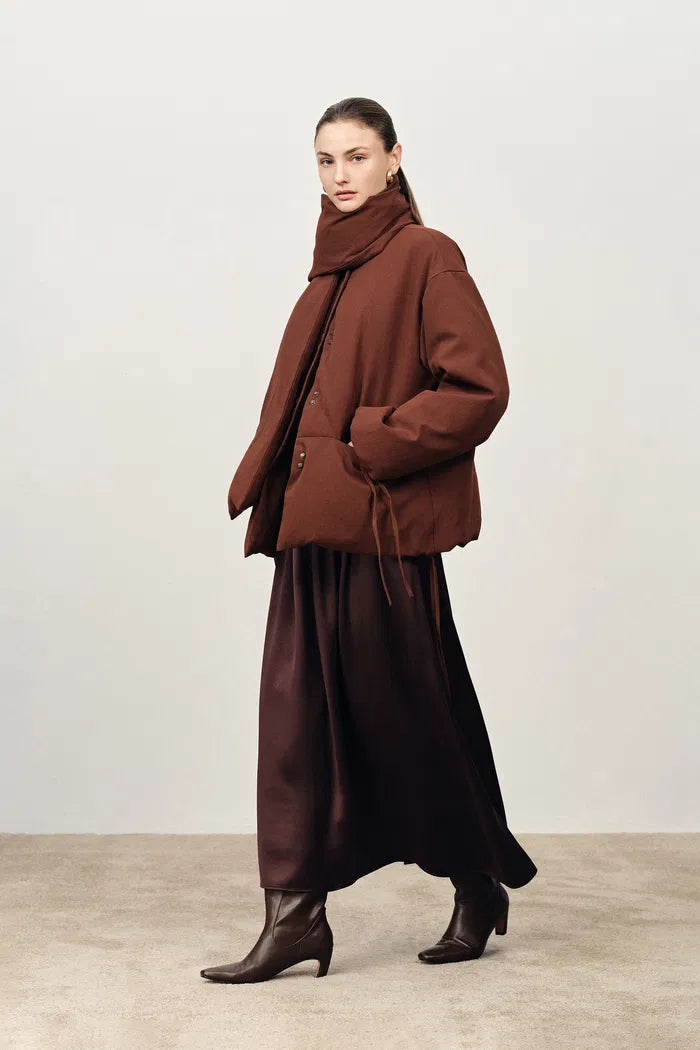 Aimee Detachable Scarf Down Jacket in Hollow Yarn Fine Twill