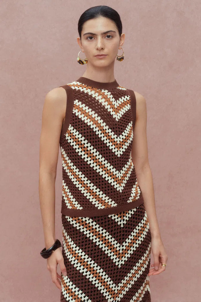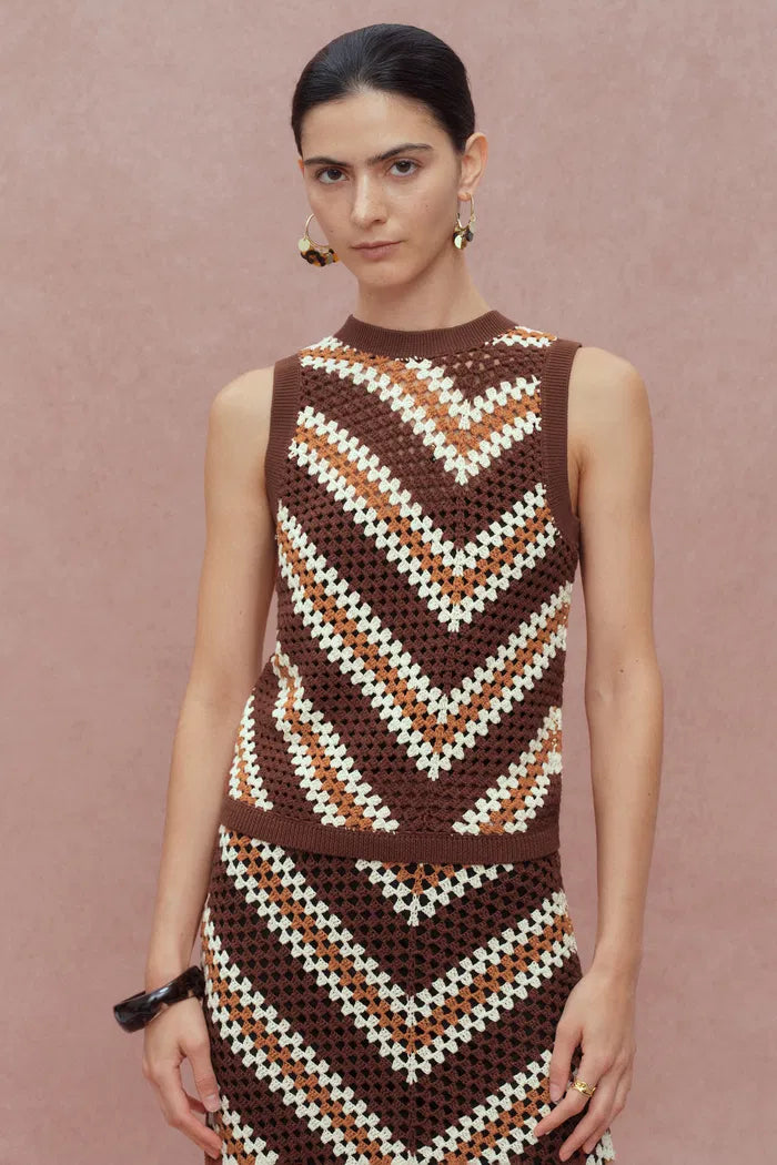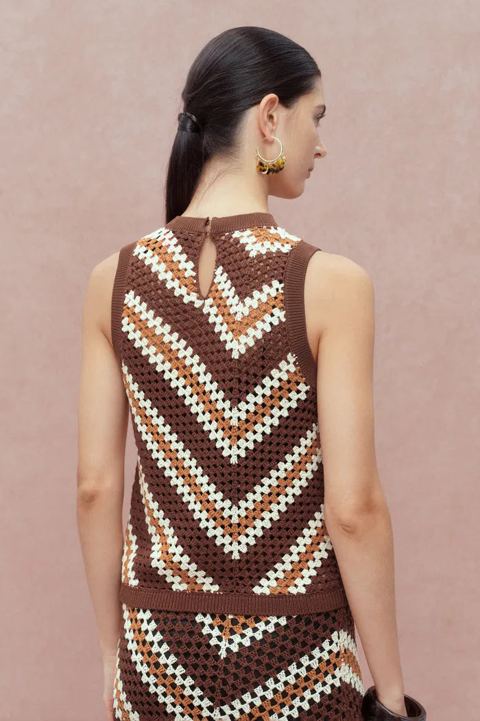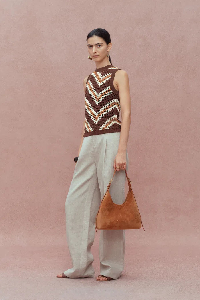 Clara Hand Crochet Sleeveless Top in Cotton-Linen Tape Yarn