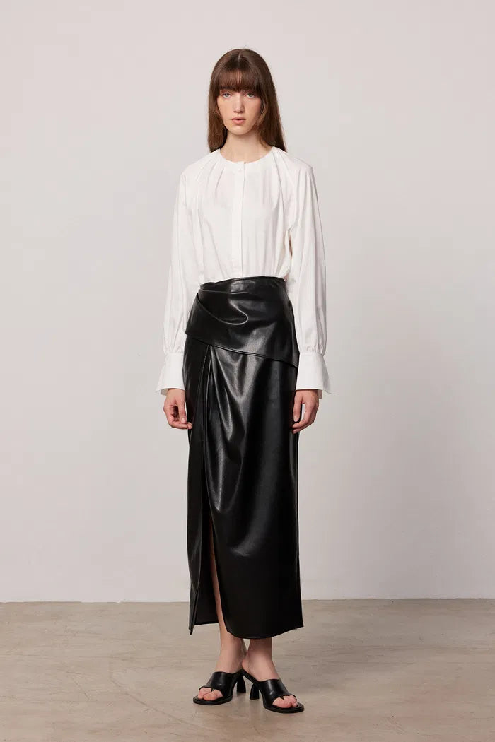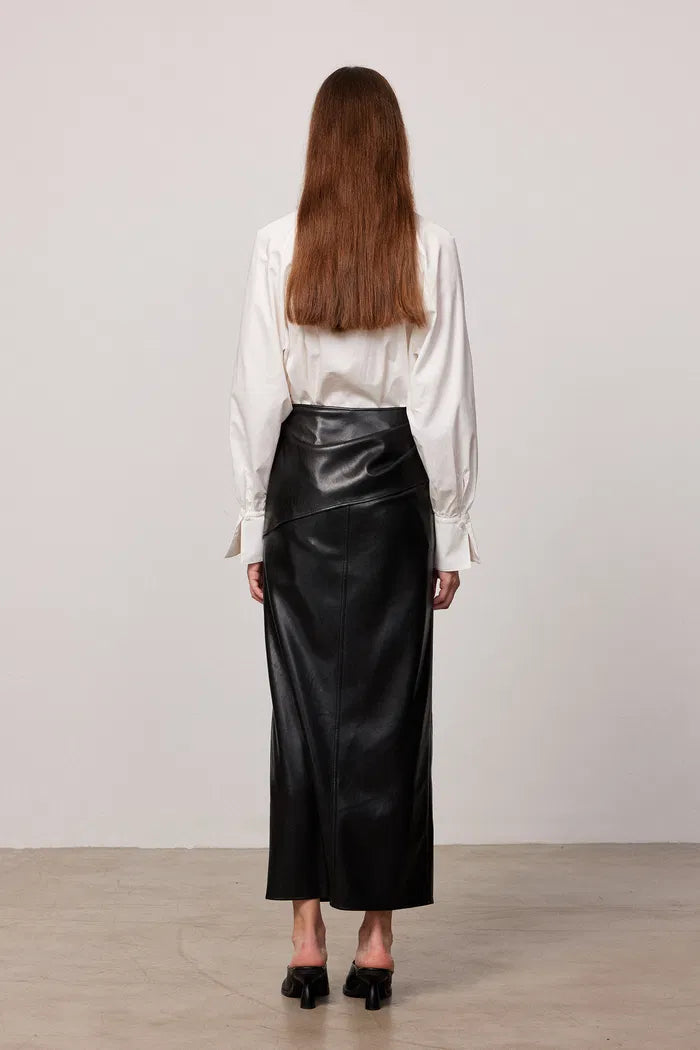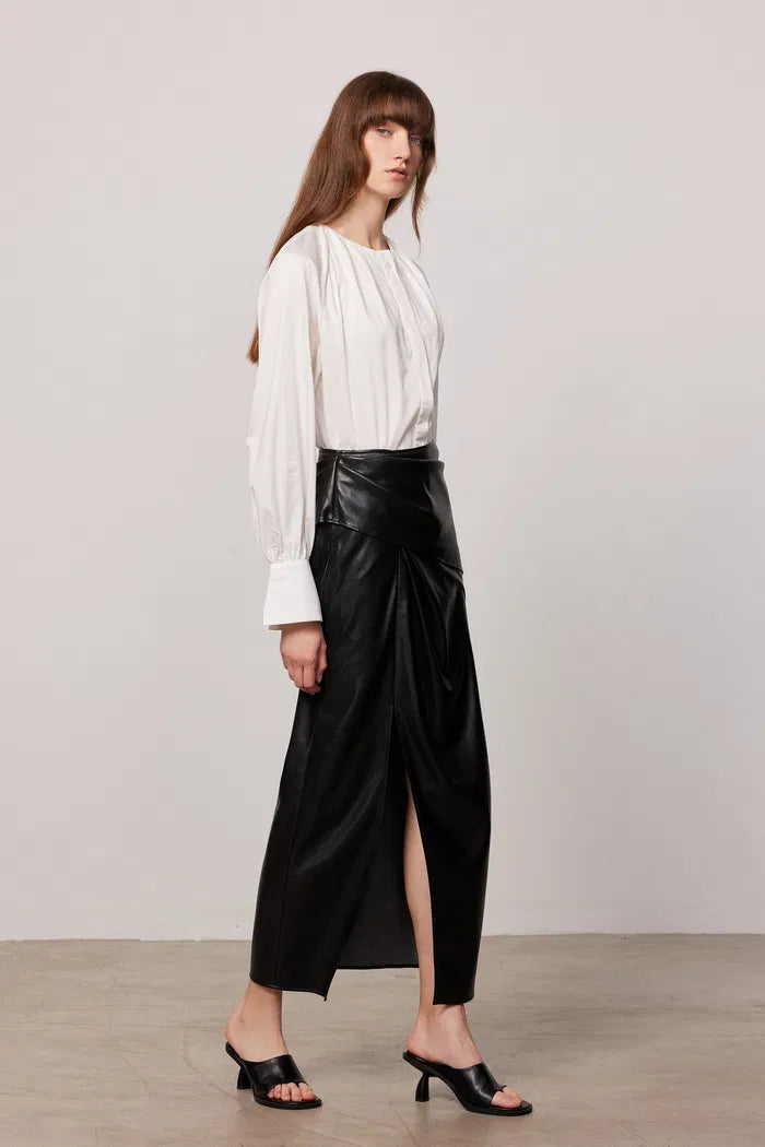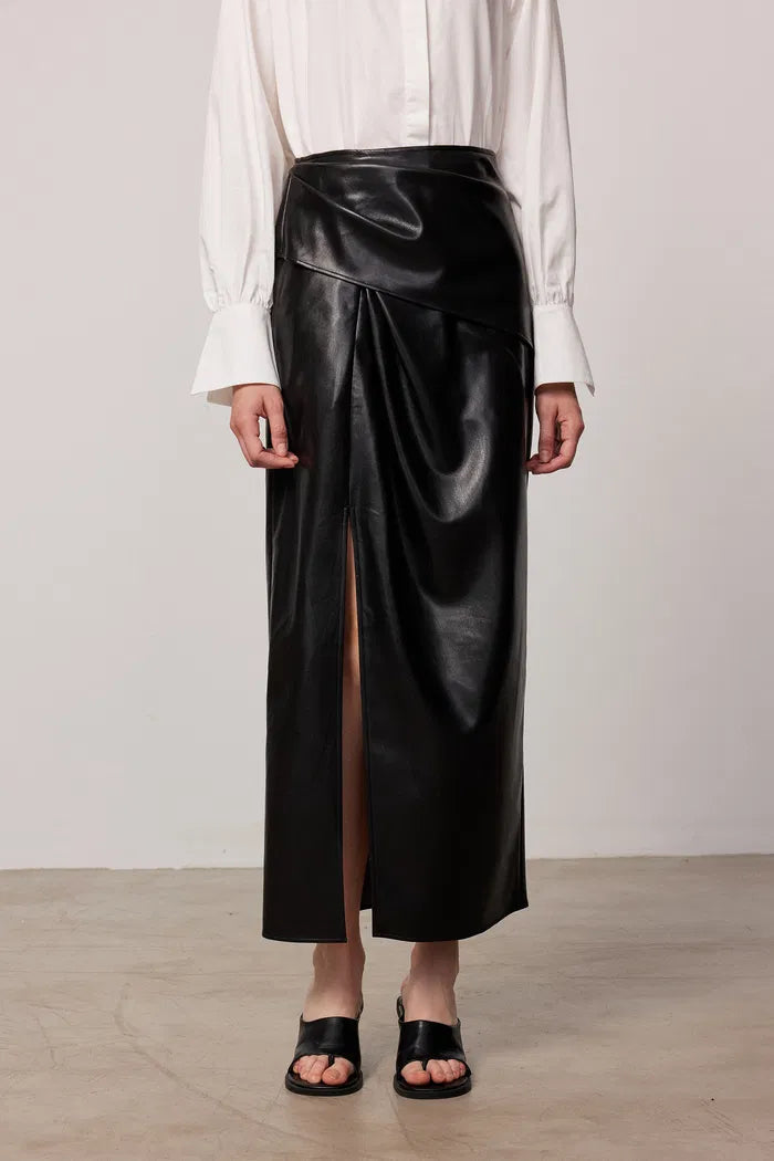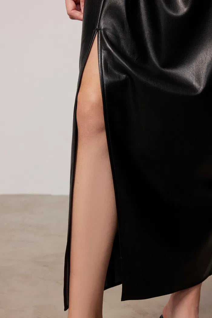 Leona Pleated Slit Skirt in Vegan Leather