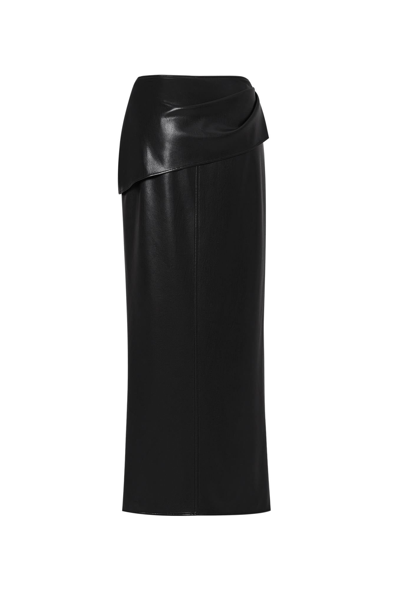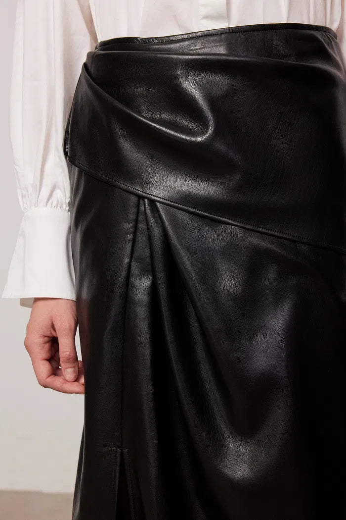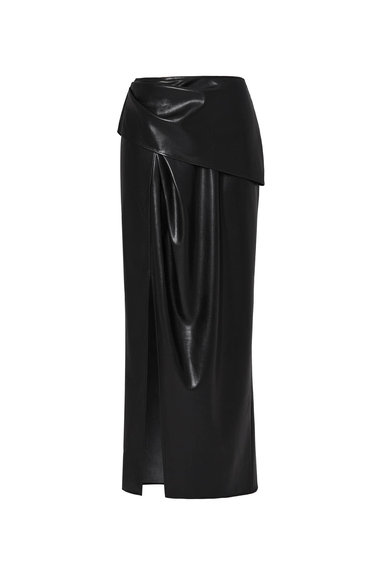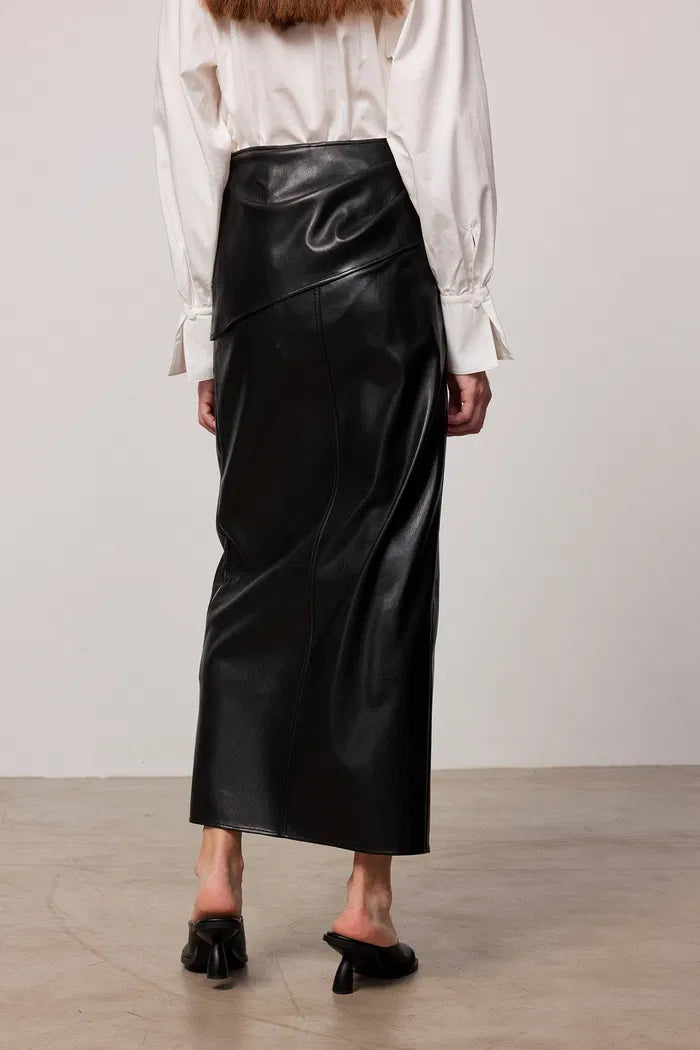 Leona Pleated Slit Skirt in Vegan Leather