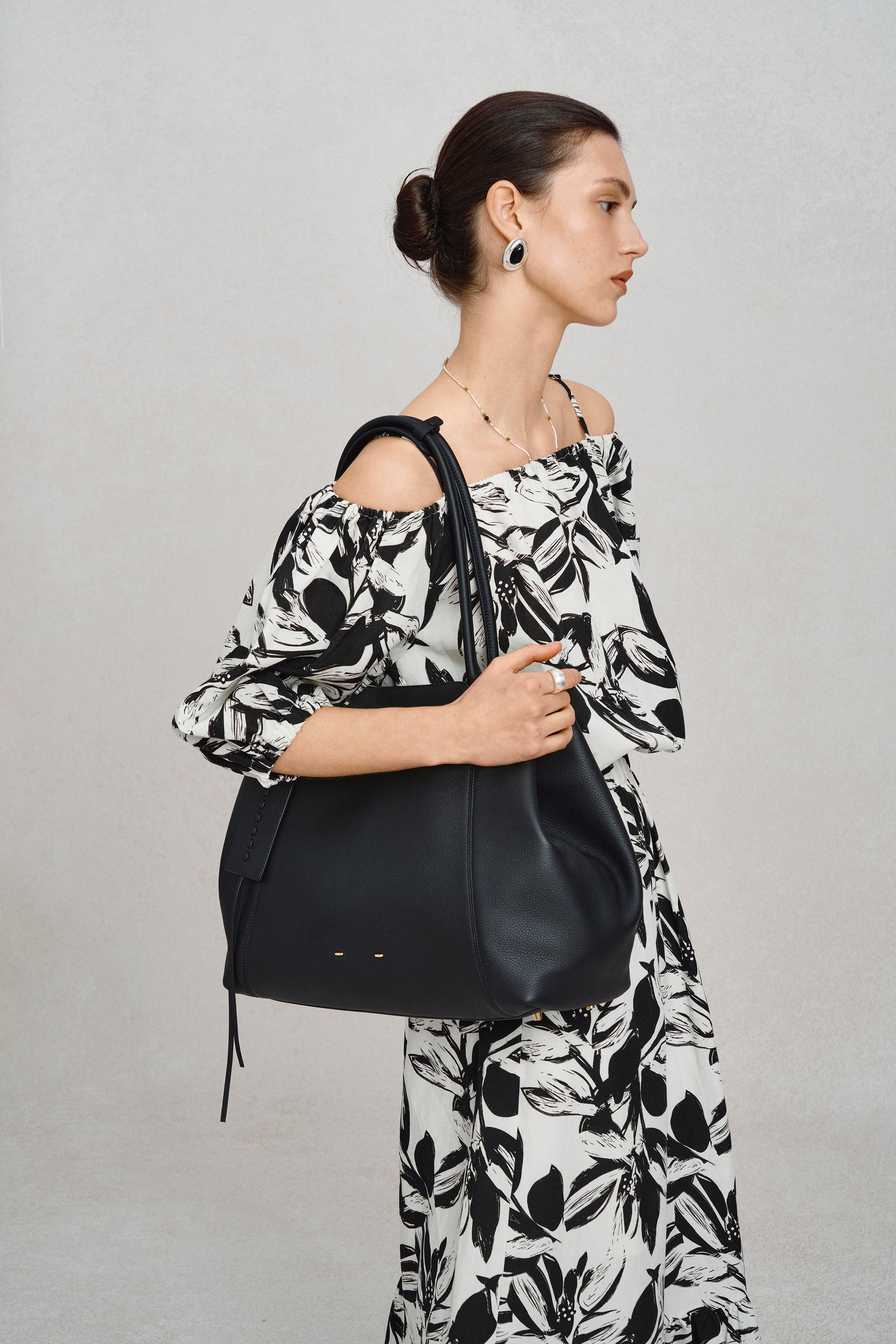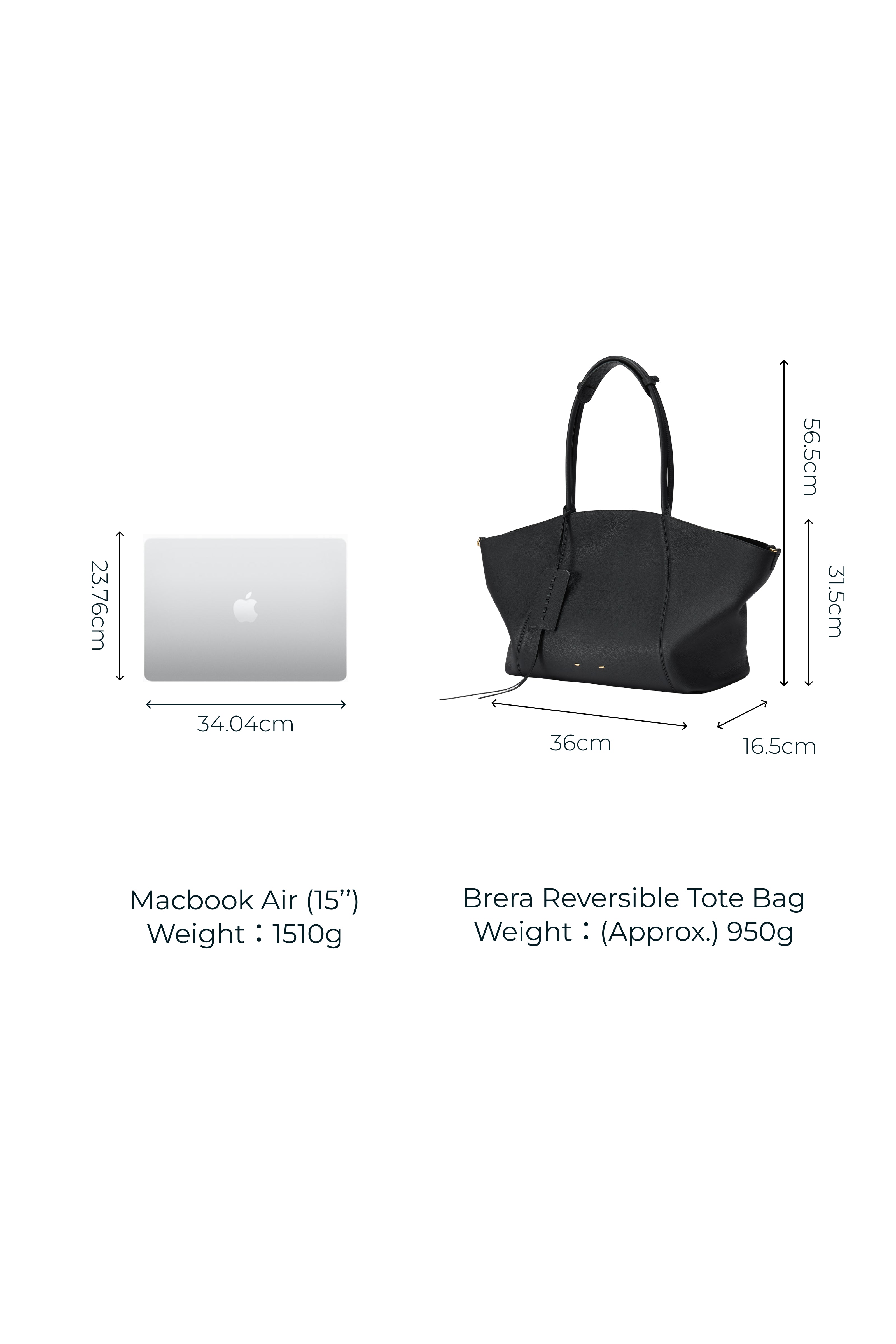 6 distinct personalities in 1 sophisticated bag. Inspired by Milan's historic artistic district Brera, this versatile tote comes with a modern convertible design that is classic elegant on one side and casual everyday on the other. The bag transforms in six ways—from classic to reversed materials, folded edges for structured silhouettes, and front and back that shows a different design. Like Brera's "la dolce vita" spirit—this bag adapts to life's everyday moments, transitioning from work to weekend.