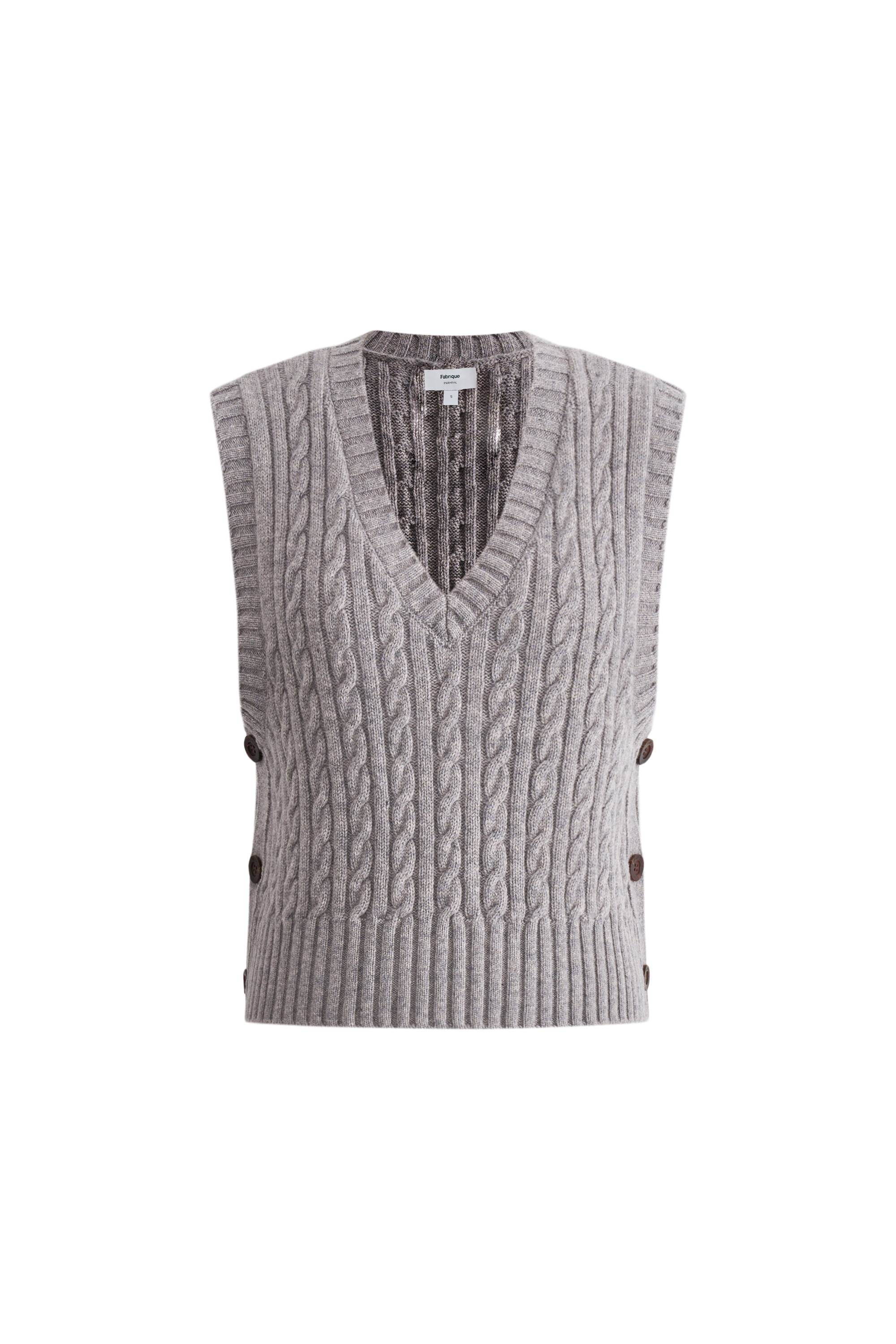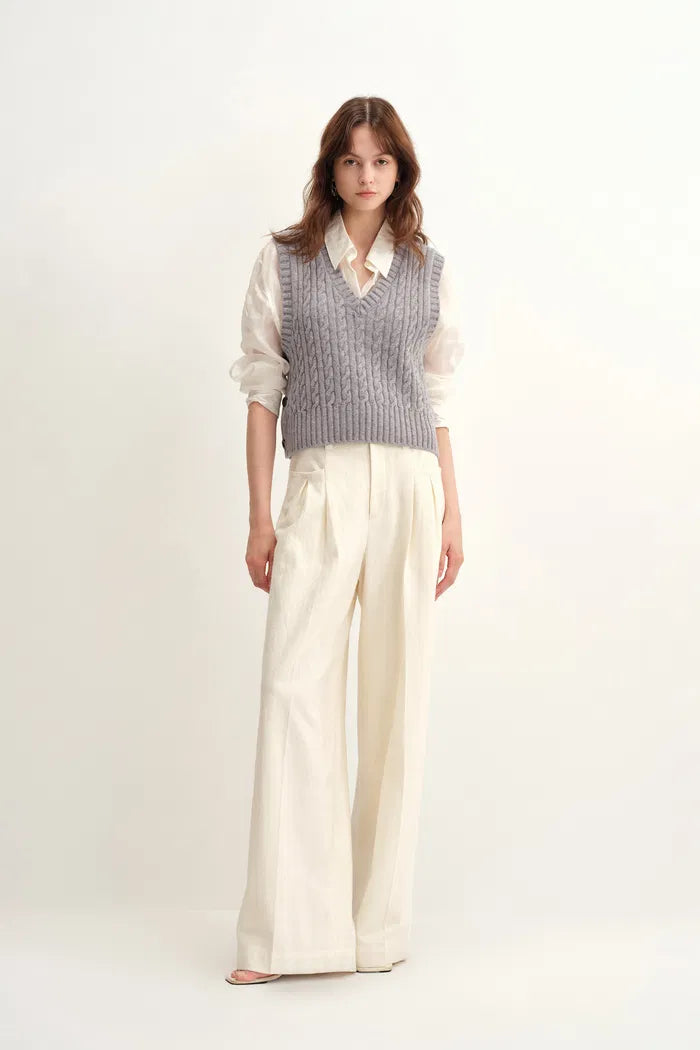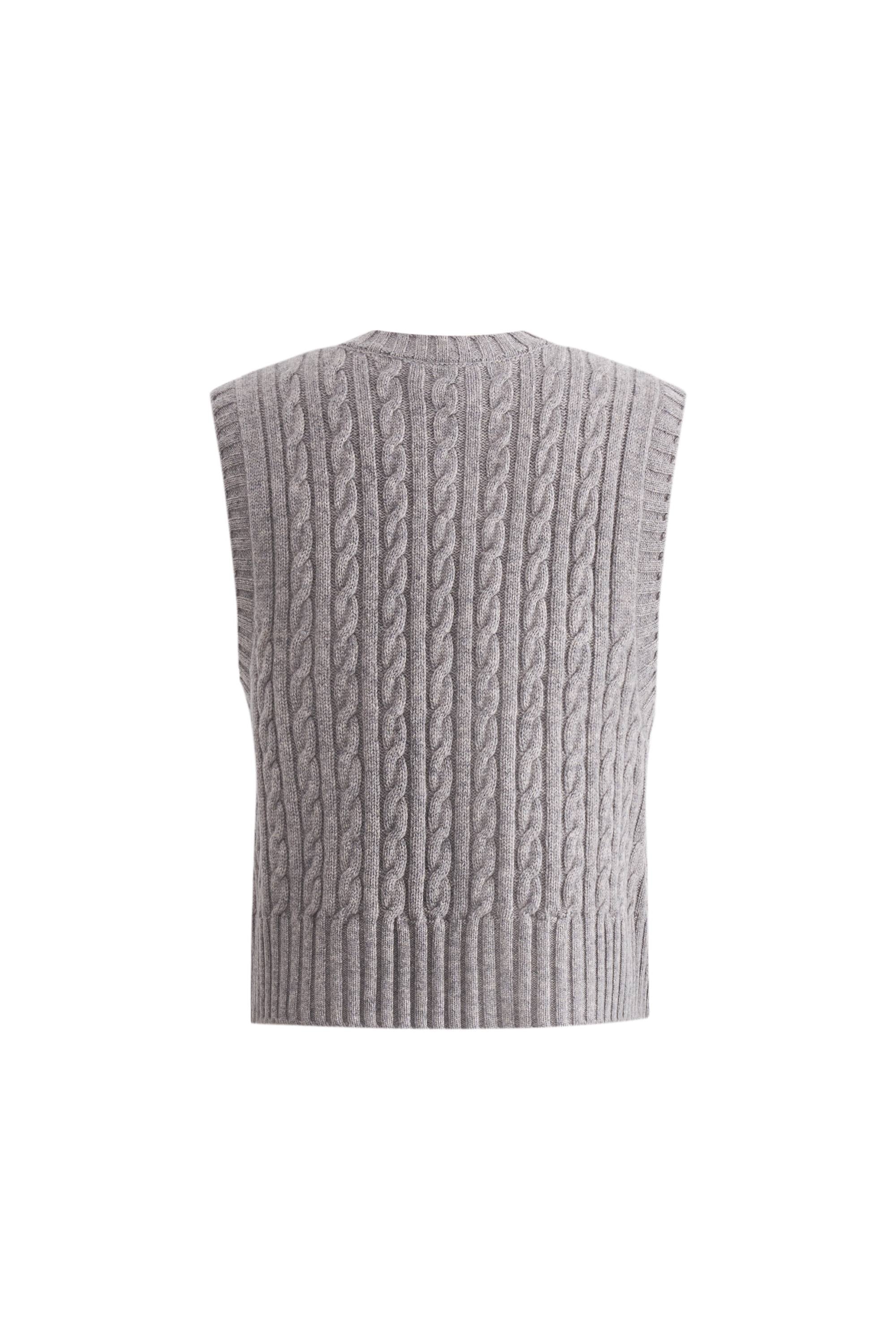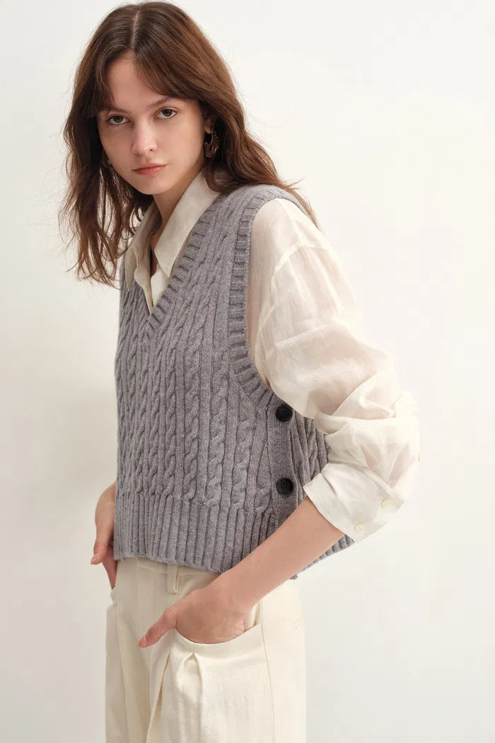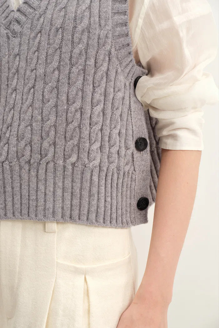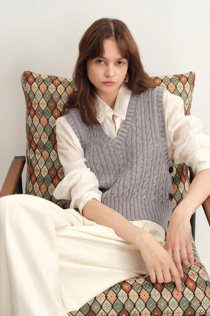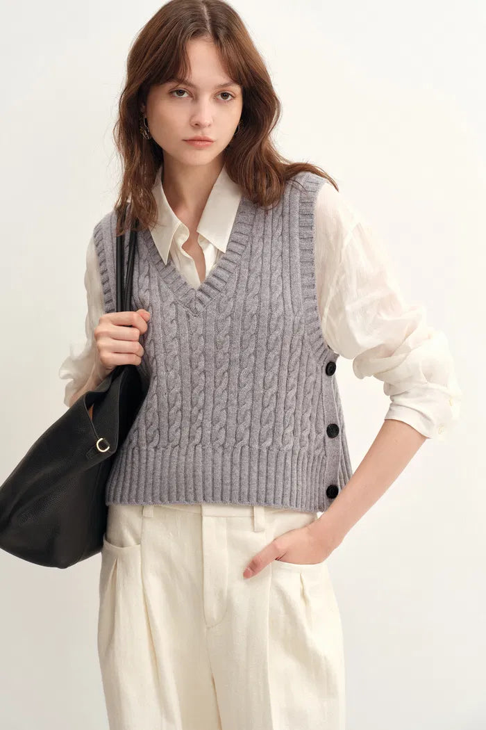 Winnie V Neck Sleeveless Top in Merino Wool Cable Knit