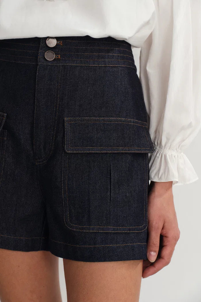 Zach Denim Shorts in Silk-Cotton Denim