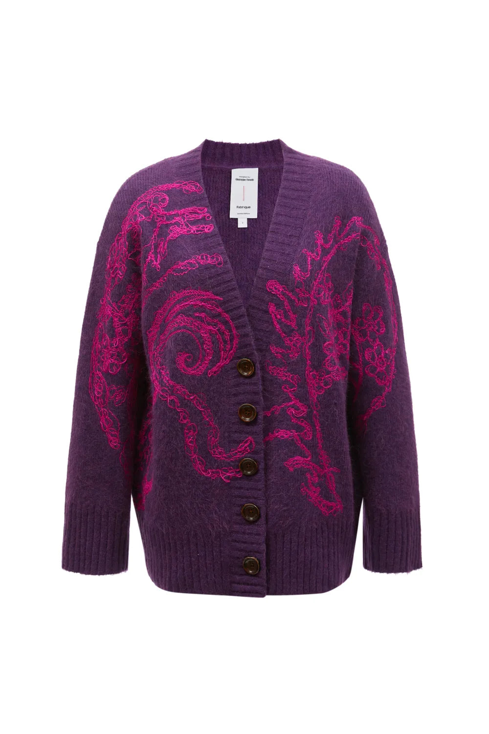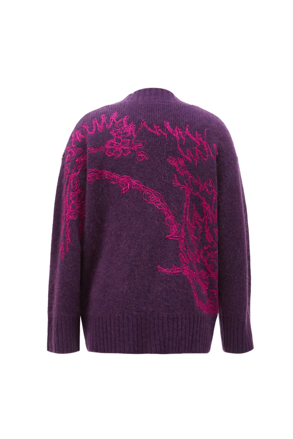 Darcy 凝夜紫彩龙穿花羊驼毛混纺绣花针织开衫