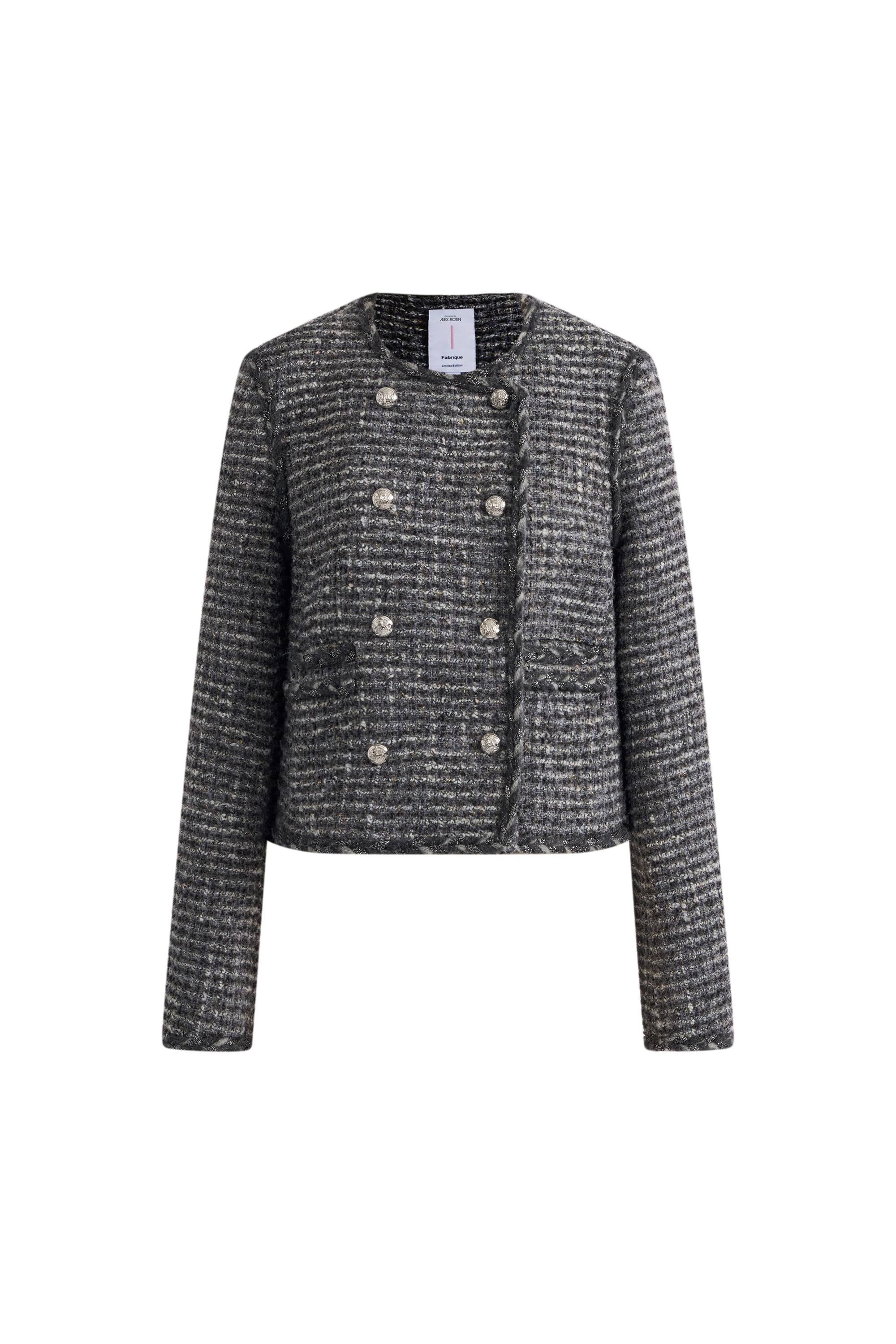 Sloane Double Breasted Metallic Trim Tweed Jacket in French Bouclé