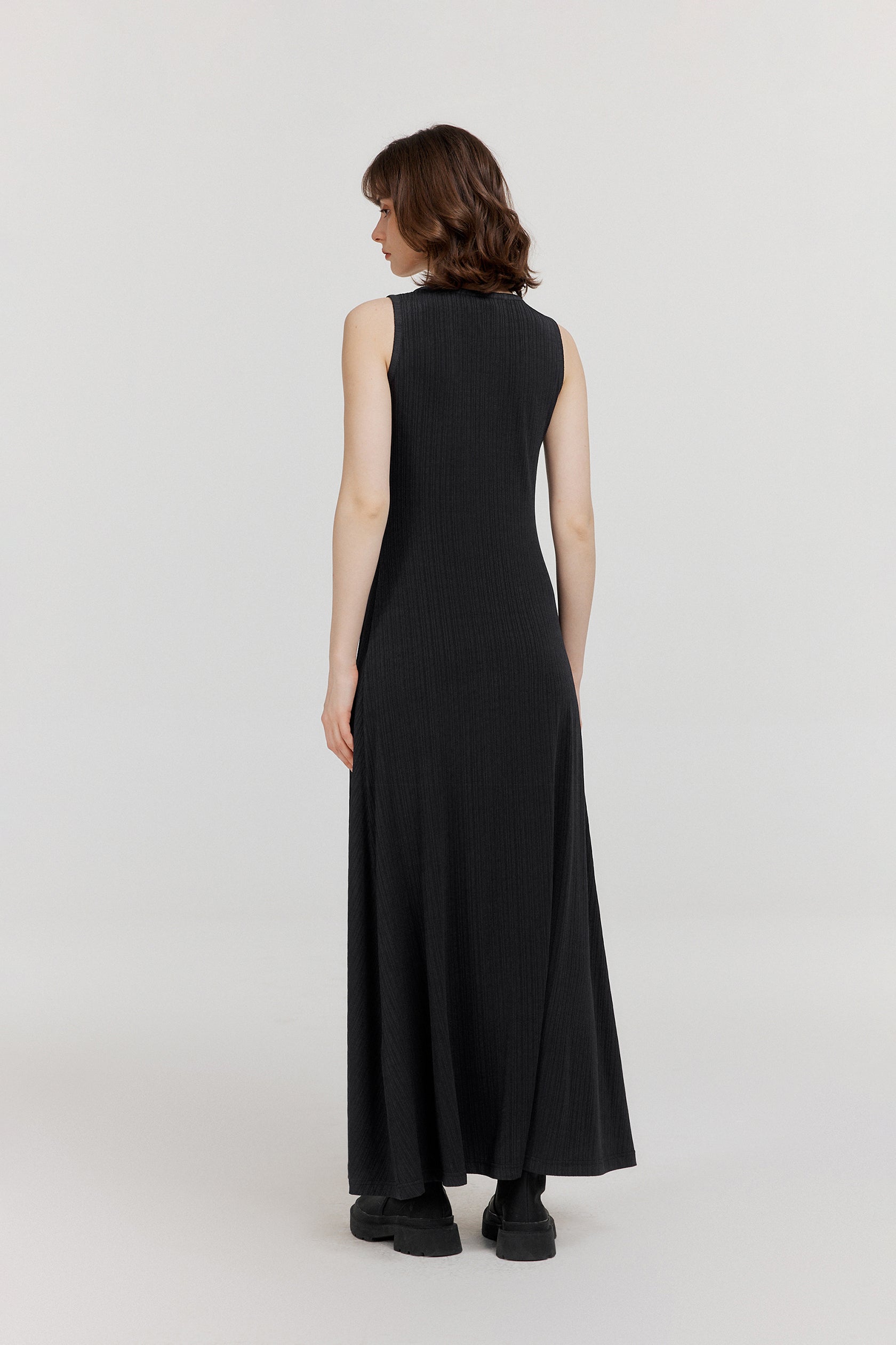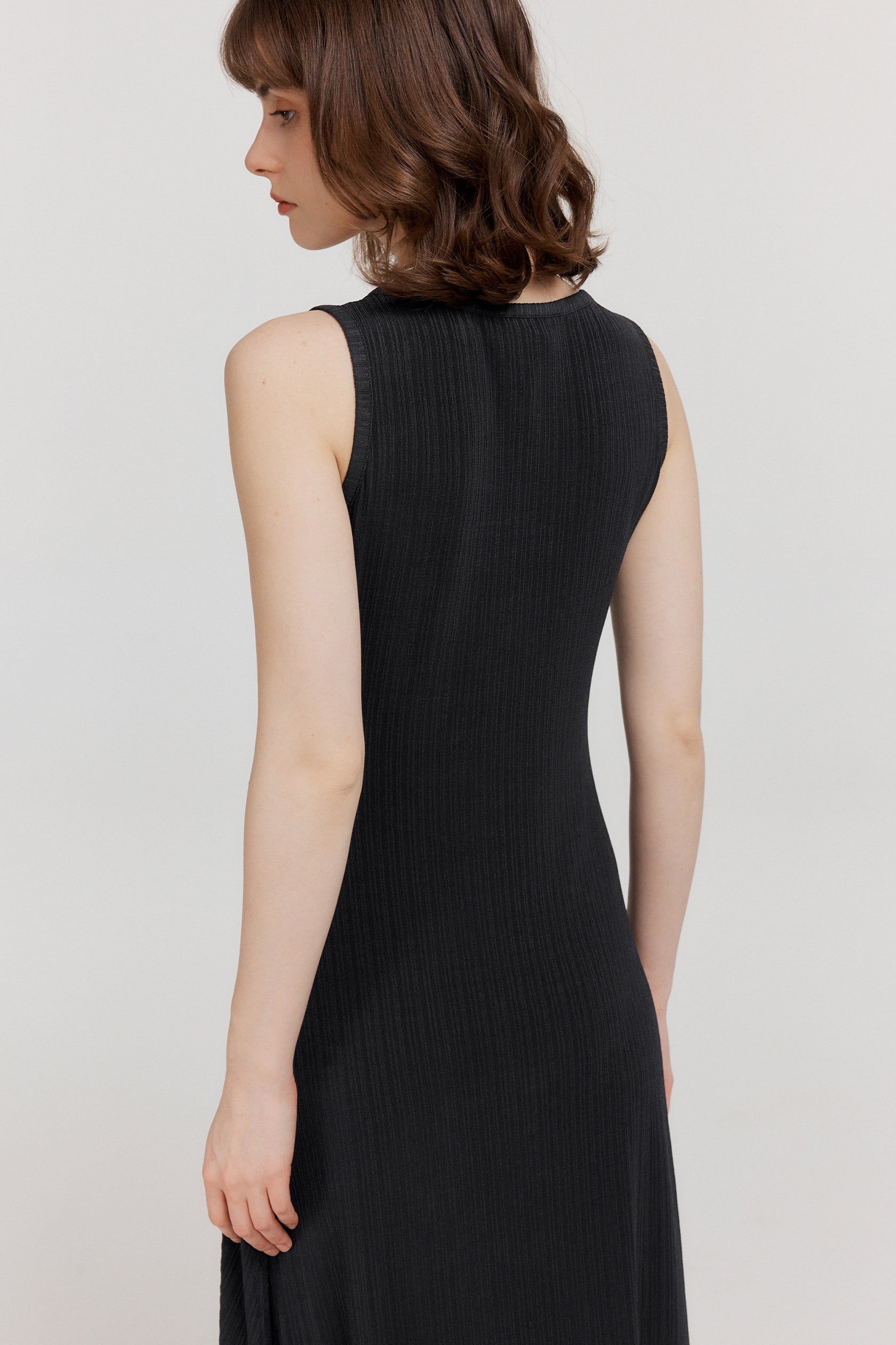 深灰色结构线背心连衣裙,整体版型经过多次修改 包容多样身材的同时更显利落精神 简洁流畅的线条勾勒出精裁廓形,凸显飒爽挺拔英姿