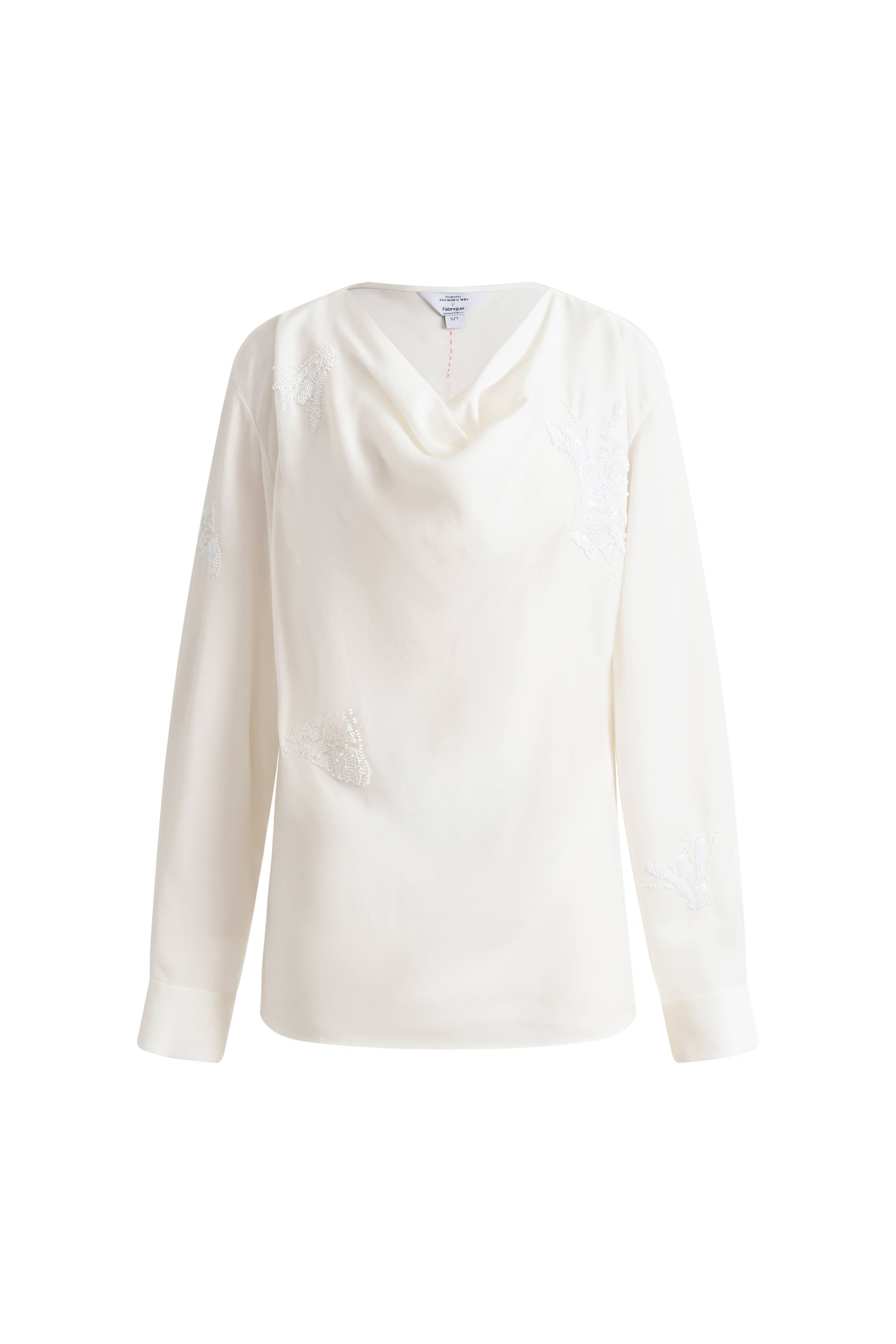Bianca Drape Neck Sequin Embroidered Blouse in Acetate Twill