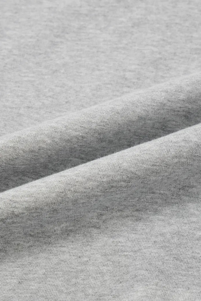 Lightweight cotton blend. Breathable, skin-friendly comfort with enhanced durability. Shape-retaining. Heather smoke gray for casual athletic style.