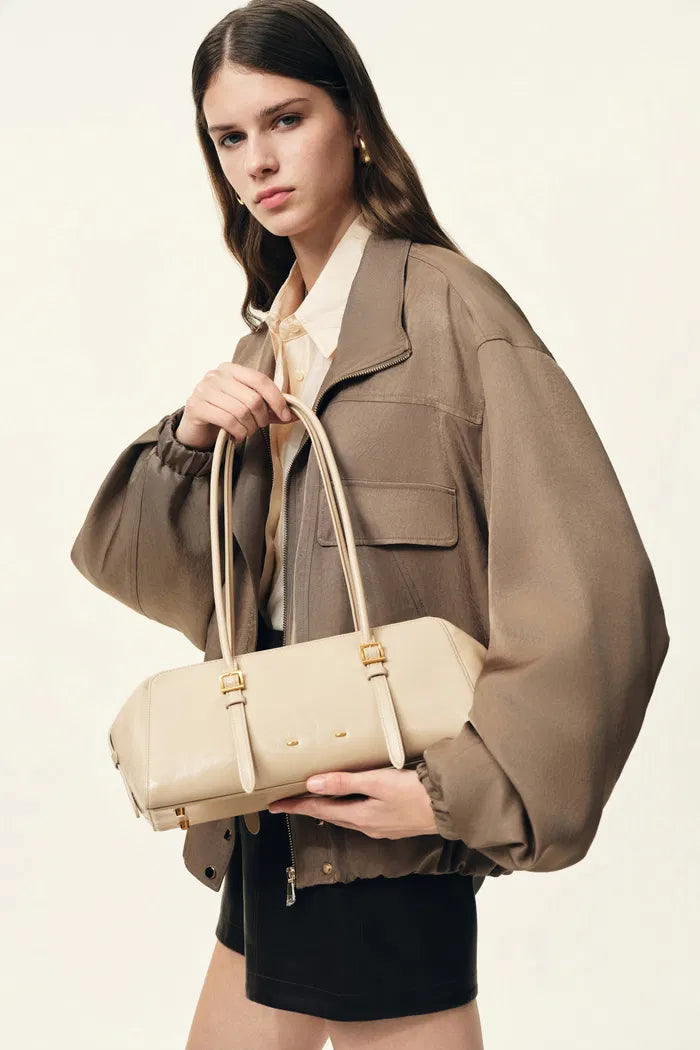 The Monti bag takes its name from Rome’s oldest quarter, where every street holds layers of history. Its design channels that same sense of harmony and proportion, translating the symmetry of Roman sculpture into a clean, elongated form. Lightweight yet refined, it carries a quiet drama—made for slipping between everyday errands and evenings out. Subtle signatures like the “gold bean” stud and column-inspired handles nod to heritage while keeping the silhouette fresh and modern.