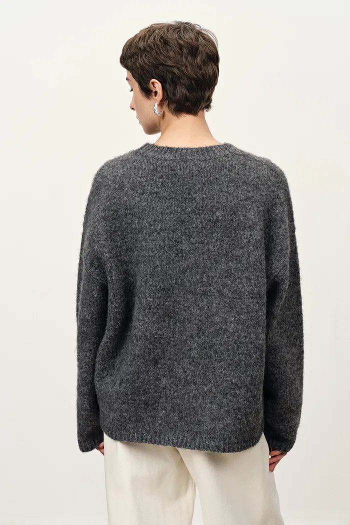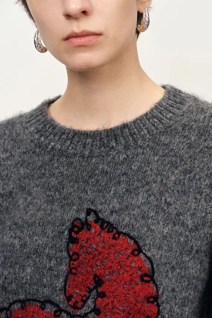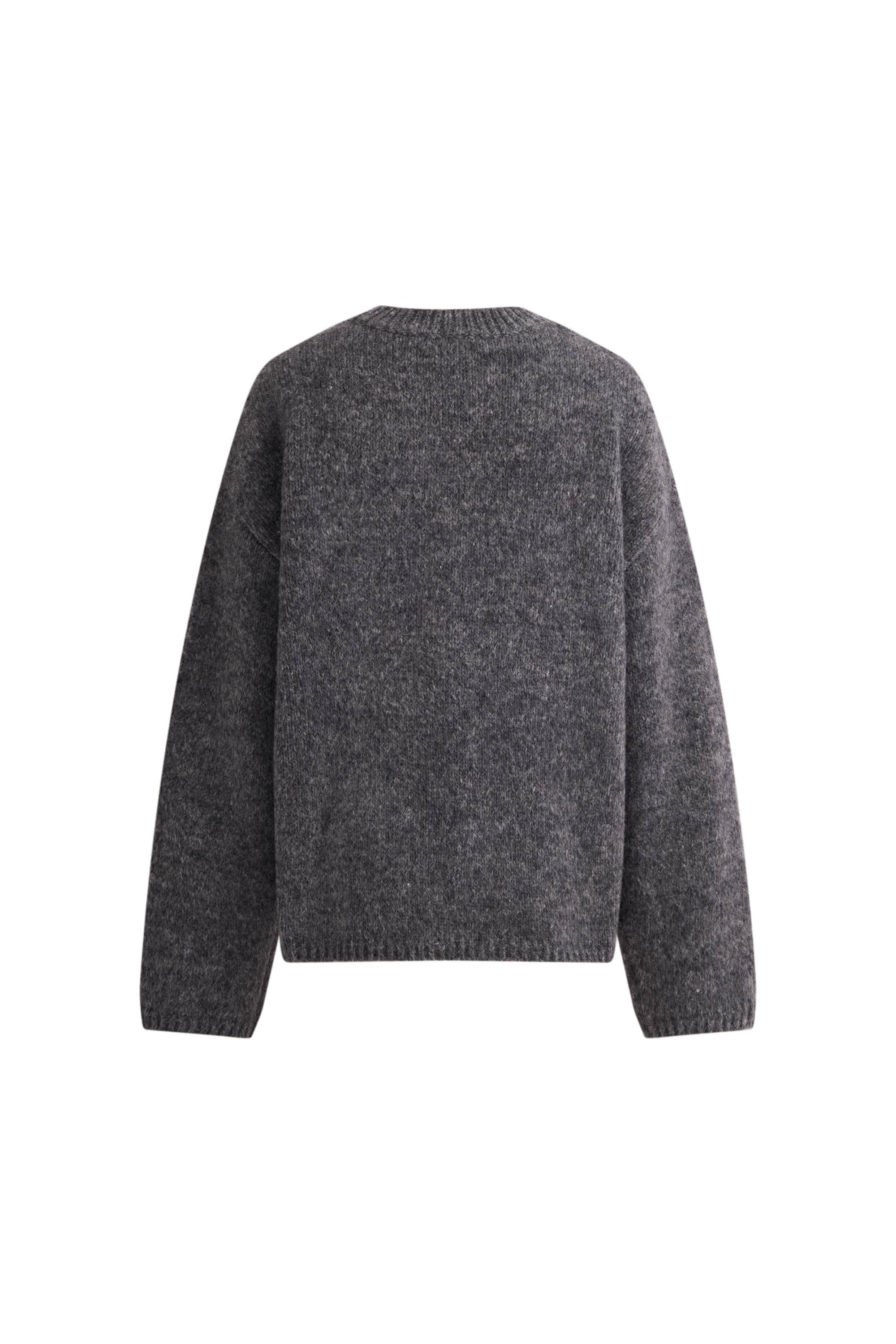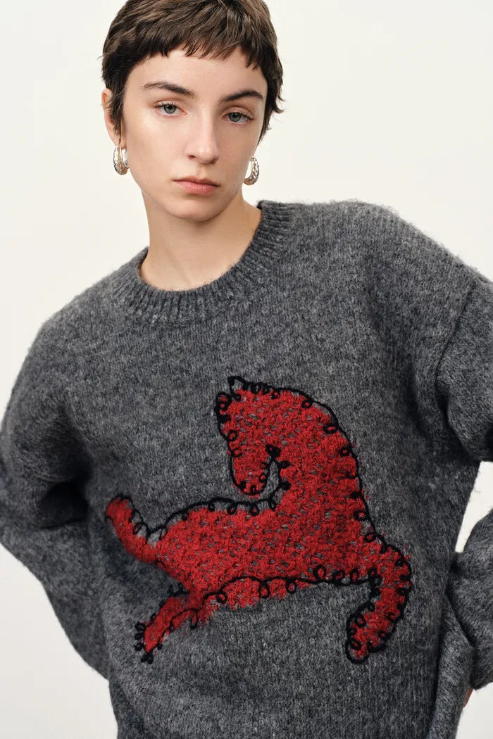 A cozy everyday knit in an easy grey tone, embroidered with a pony in boucle texture. Plush alpaca-blend yarn gives it the warm, cushy feel perfect for winter layering.