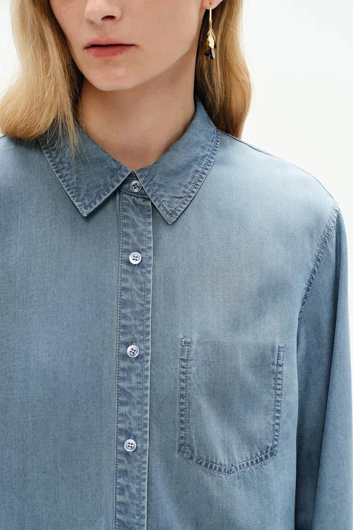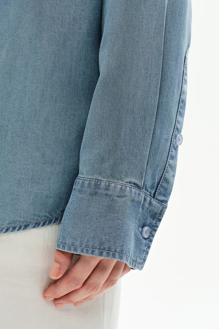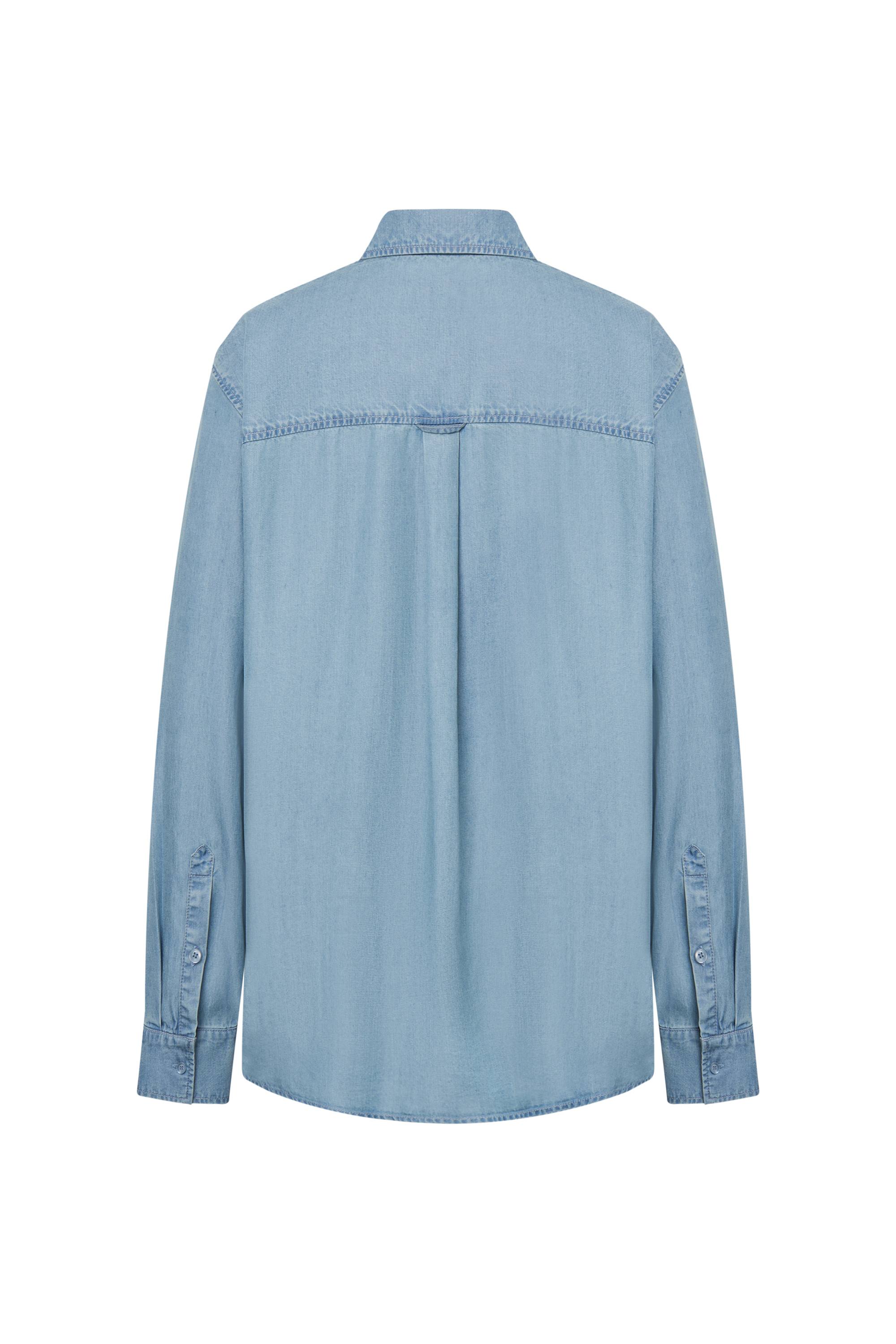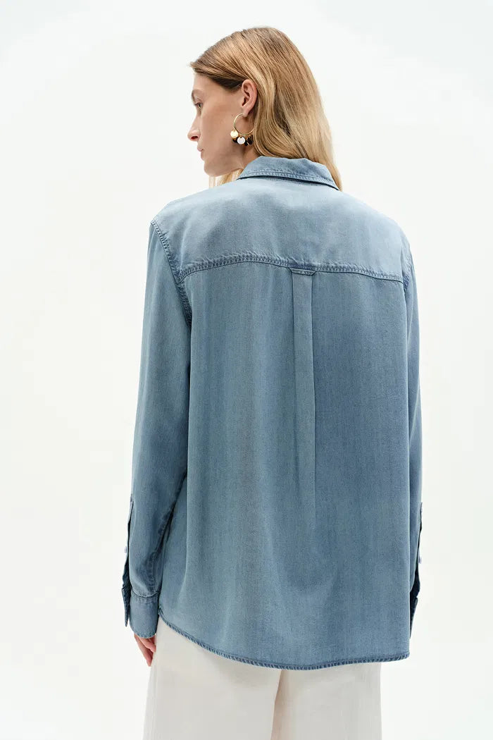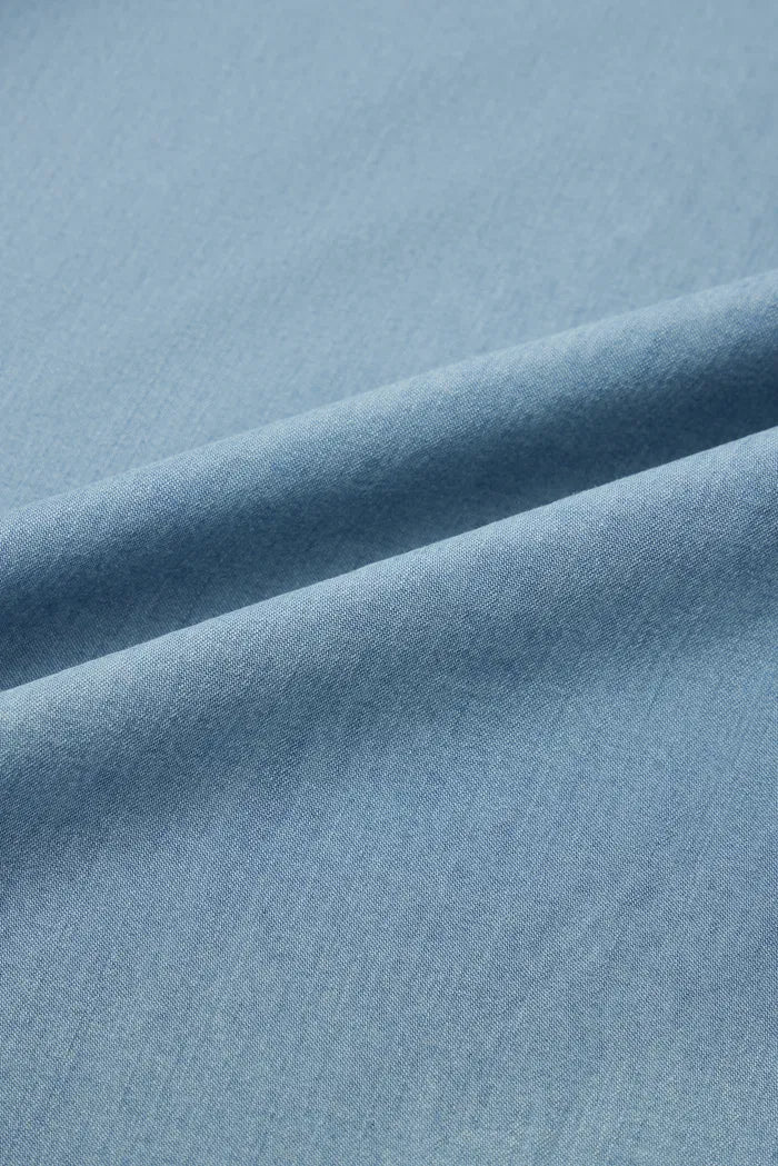 Comfort meets cool in this reimagined denim shirt. Tencel fabric provides natural breathability and moisture-wicking, while the relaxed fit, roomier shoulder sleeves gives you that laid back look. In sky blue, a must-have wardrobe essential.